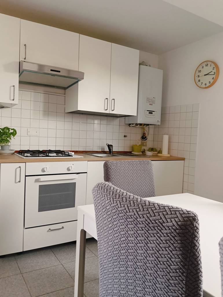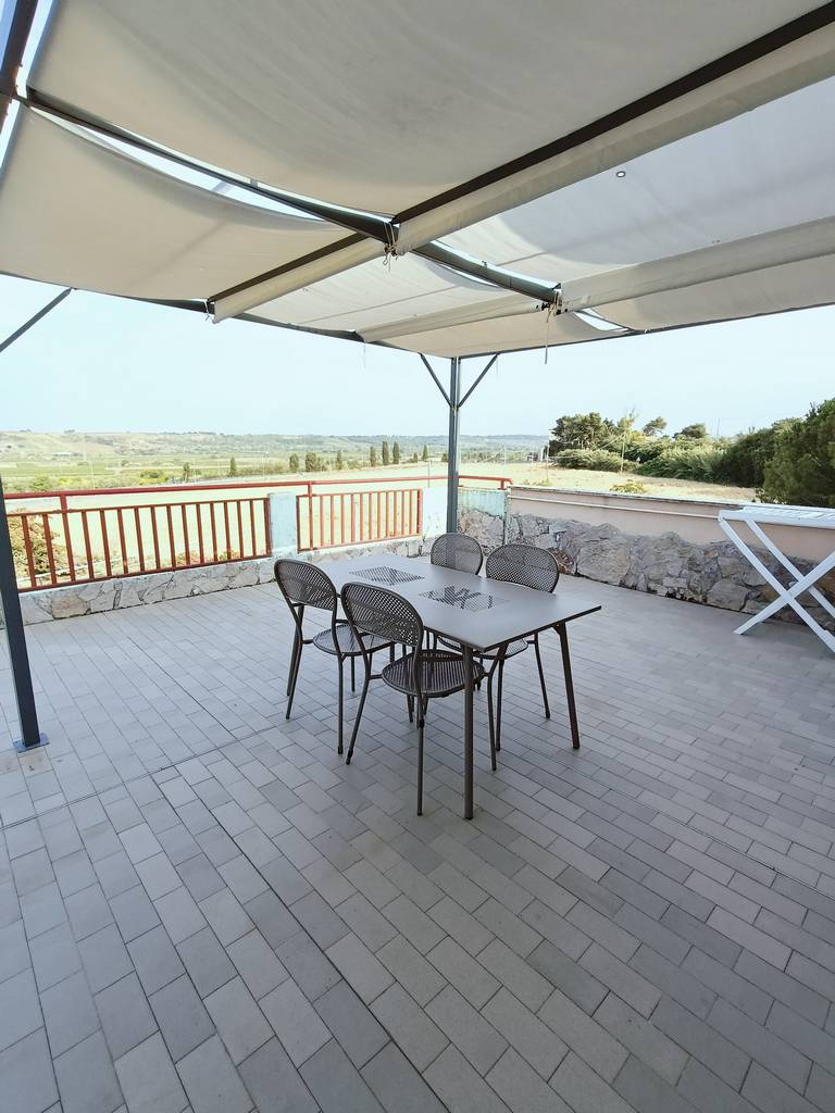 Appartamento composto da ampia cucina abitabile (letto singolo e divano letto), camera matrimoniale, bagno con doccia. Seconda camera matrimoniale indipendente con bagno privato con doccia. L'appartamento ha un fantastico terrazzo panoramico molto ampio con gazebo, tavolo e sedie.